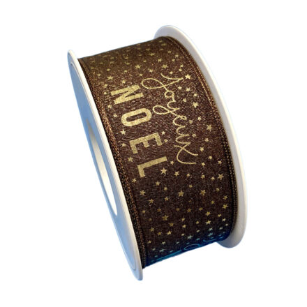 “JOYEUX NOËL” RIBBON, BROWN AND GOLD (1in)