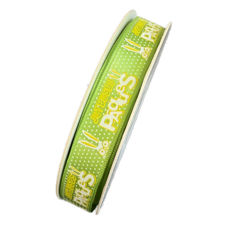 Green and Yellow Ribbon – Curious Rabbits – Happy Easter (0.6in)
