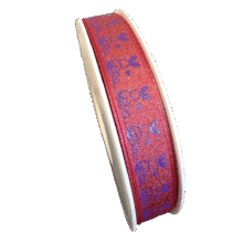 Red Ribbon with Pink Fir Tree Pattern – Taos (1in)
