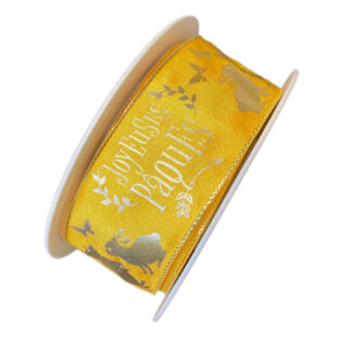 Ruban Satin, Joyeuses Pâques, Jaune (40mm)