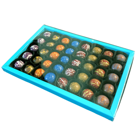 Boite étui fourreau, base peu profonde avec fenêtre– Bleu Turquoise (500g)