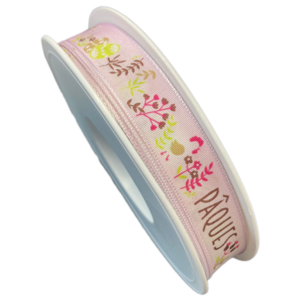 Ruban Herzen – Coeur rose sur rose (25mm)