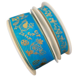 Ruban bolduc motif floral vert lime métallique