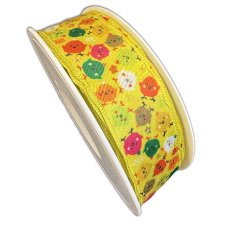 Ruban Jaune avec Motif Multicolore– Poulet en Folie (25MM)