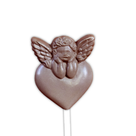 Moule à sucettes en chocolat – Cupidon avec décoration florale sur cœur allongé