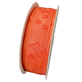 Ruban en Taffetas – Collection Ajouré – Papillon Corail (25mm)
