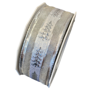 Ruban Calgary – Blanc et accent métalique argenté (40mm)