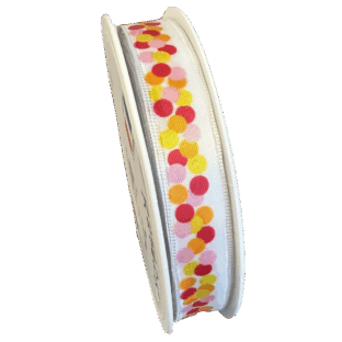 Ruban Satiné, Blanc à Pois de Couleur – Explosion Pop (15mm)