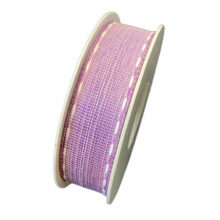 Ruban Unis, Beige avec Bordures Piqués Blanches (25 mm)