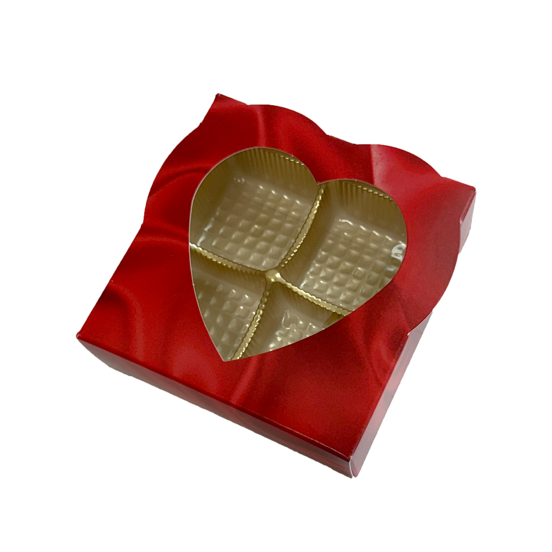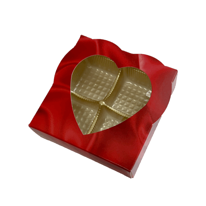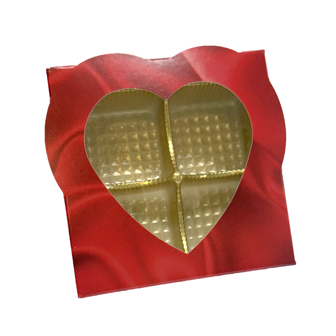 Boîtes pliante pour chocolat avec fenêtre, cavité or pour 4 chocolats inclus. Montage facile, boite en un morceau. En paquet de 50.