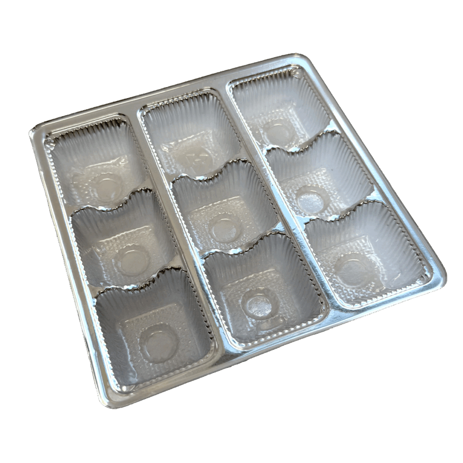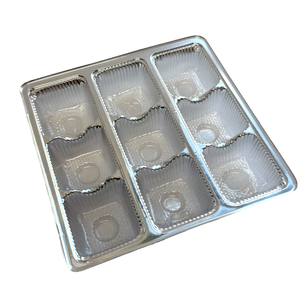 Cavités argent pour 9 chocolats, format carré 1/2lb