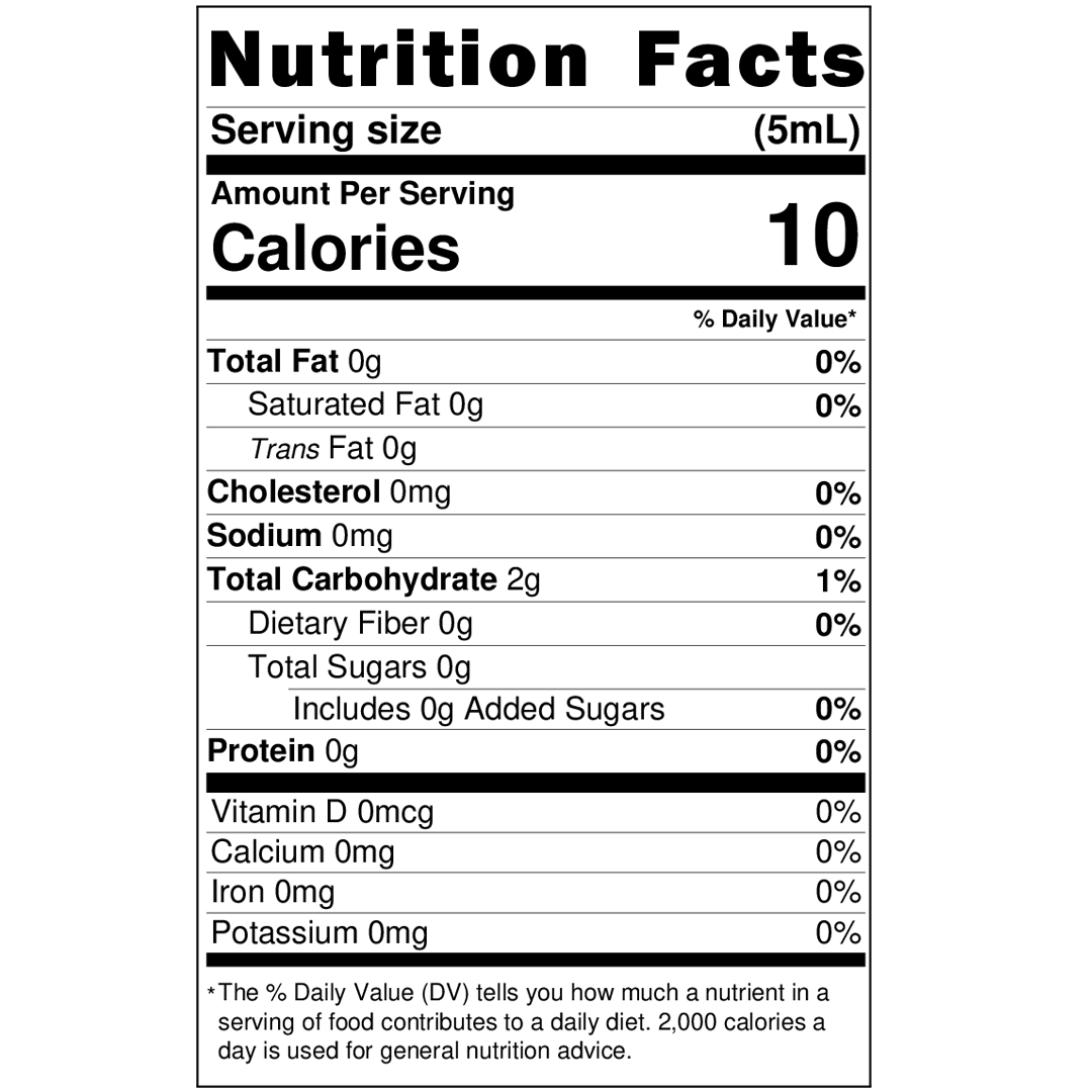 Ingrédients: Eau, propylèneglycol, arôme naturels et artificiels, gomme de xanthane.