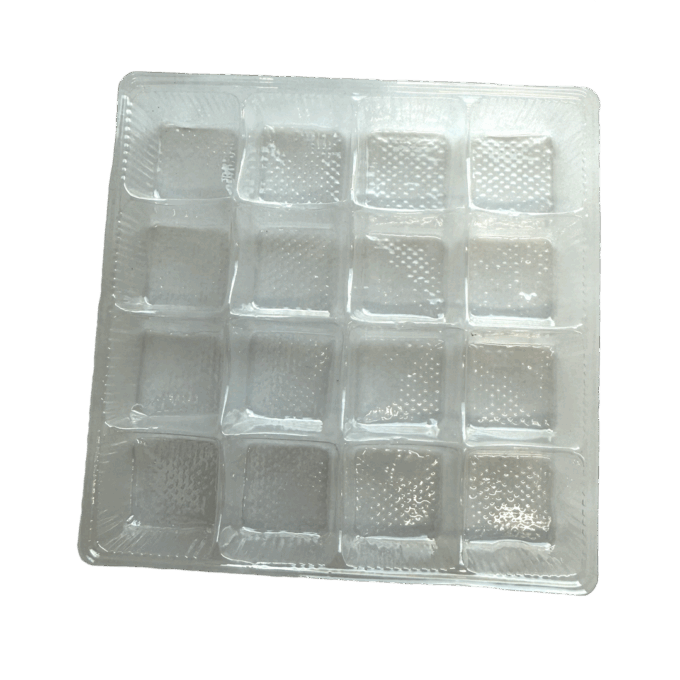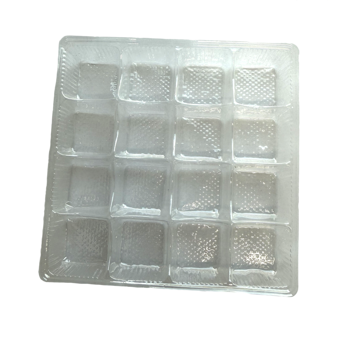 Cavités transparentes pour 16 chocolats, format carré 1/2lb