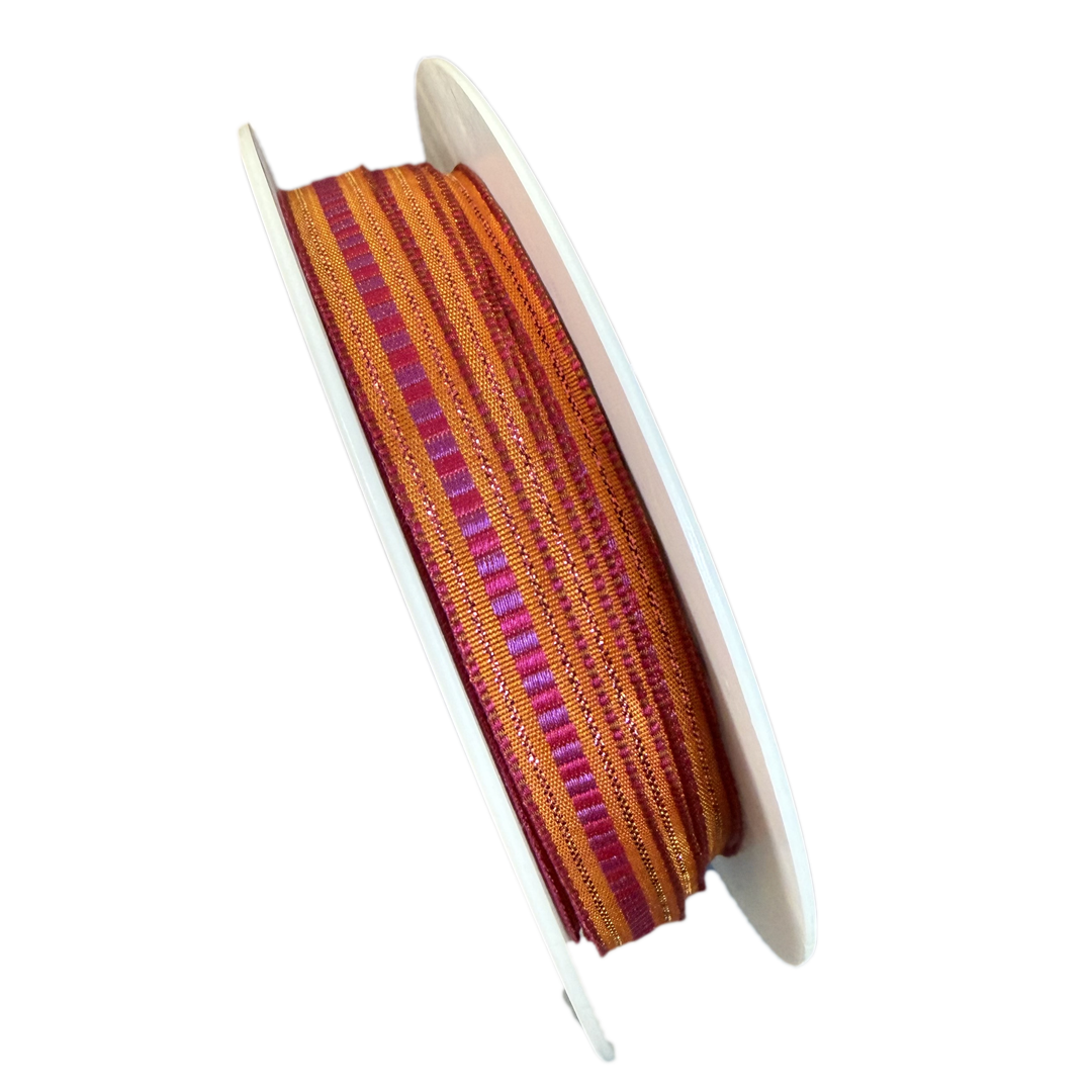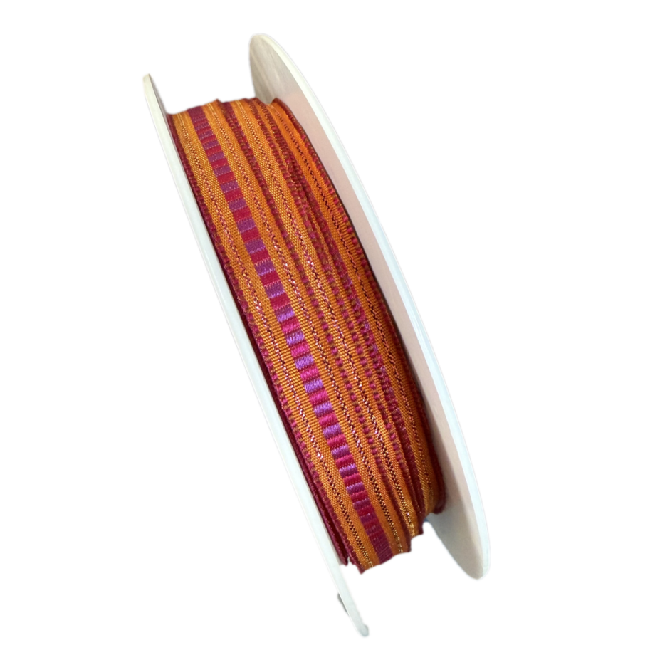 Ruban de style acétate multicouleur avec accents cuivre métallique, en polyester. 10mm x 25m.