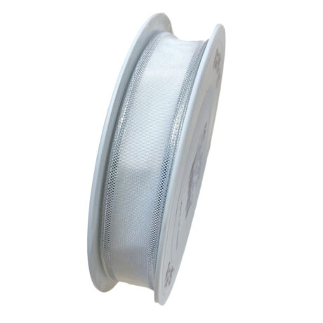 Ruban laitonné, blanc et bordure argenté. 25m x 15mm ou 27yds x 0.6in.