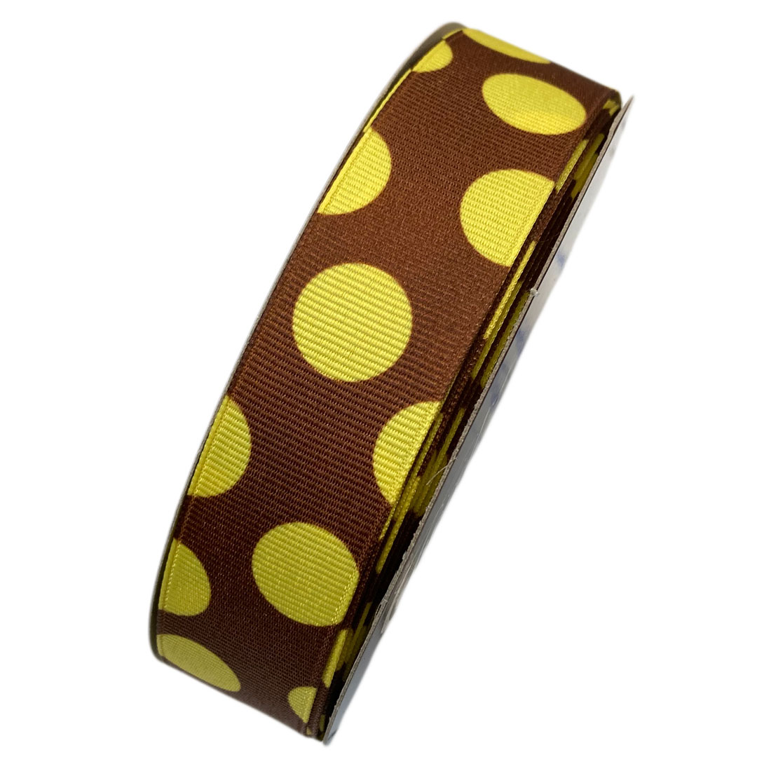Ruban gros-grain, brun à pois jaune, 25m x 25mm / 27 yds x 1in