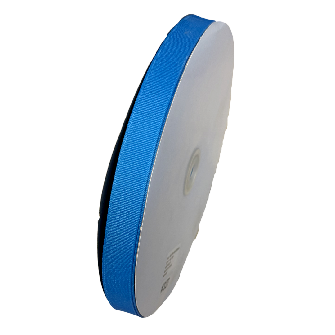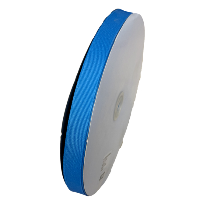 Ruban gros grain – Bleu Égée aux bords non-laitonnés.