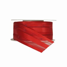 Ruban taffetas laitonné lilipompom, imprimé rouge et semi-transparent.