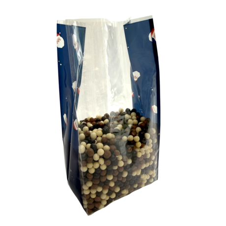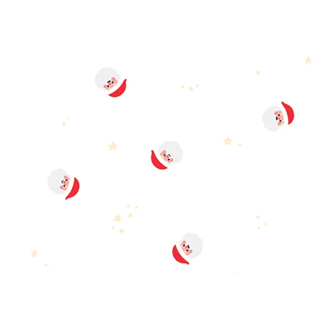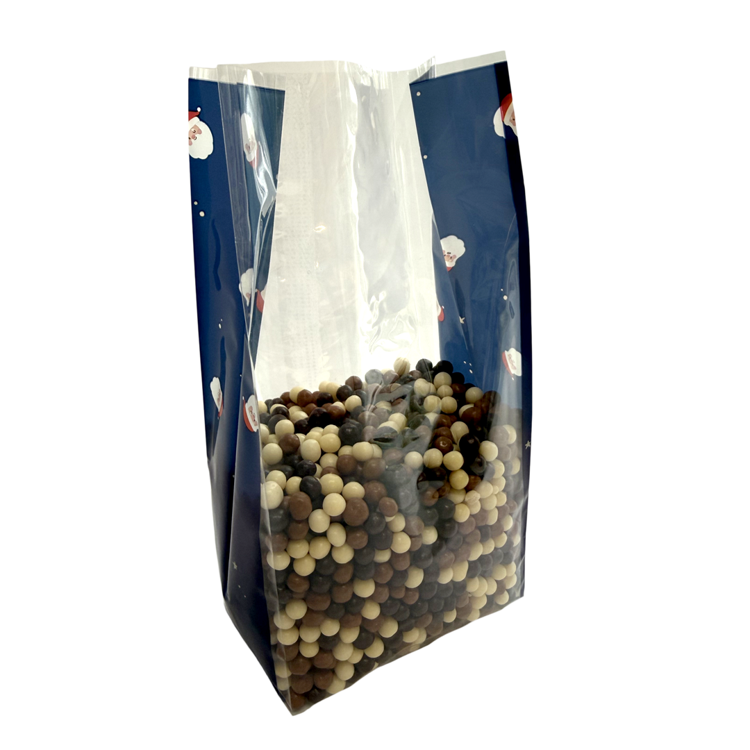 Sachet cellophane transparent à soufflets, Père Noël et Étoiles, imprimé recto-verso sur fond transparent.