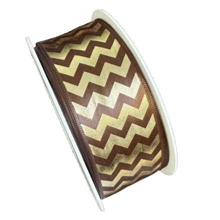 Brown and Gold Satin Ribbon with ZigZag Pattern (1.6in)