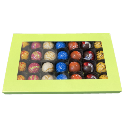 Sleevebox with shallow base with transparent cover – Lime Green (500g)