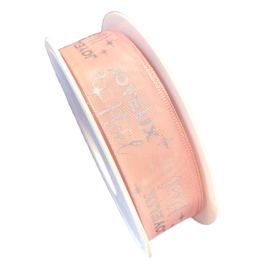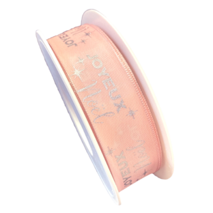 Light Pink Ribbon, “Joyeux Noël” (1in)