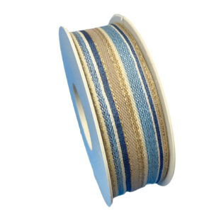 Blue, Brown, White And Gold Stripe Ribbon (1.2in)