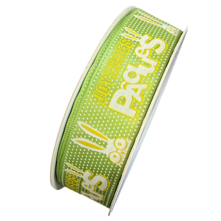 Green and Yellow Ribbon – Curious Rabbits – Happy Easter (1in)