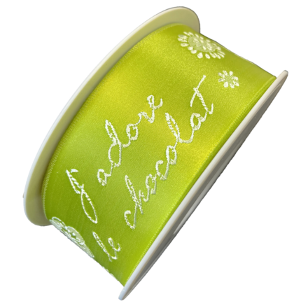 Green Satin Ribbon – J’adore le Chocolat (1.6in)