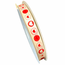 Satin Ribbon – White with Red Heart – “Happy Valentine’s Day” (5/8 in)