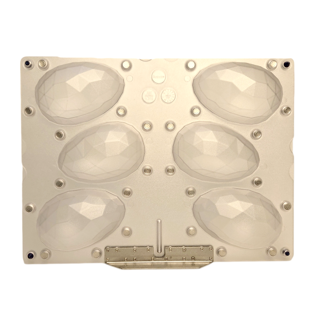 Diamond Egg – 134 x 88.6 x 88.6 mm, approximately 150 g, 6 (3 x 2) cavities, with magnets, mold dimensions: 425 x 320 mm (metal support on the long side)