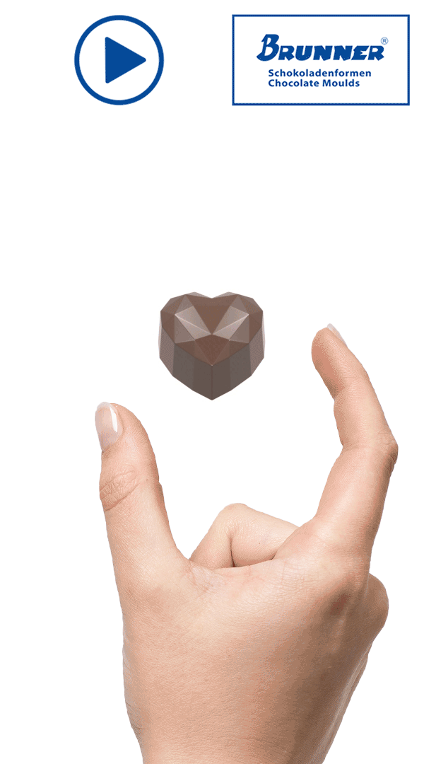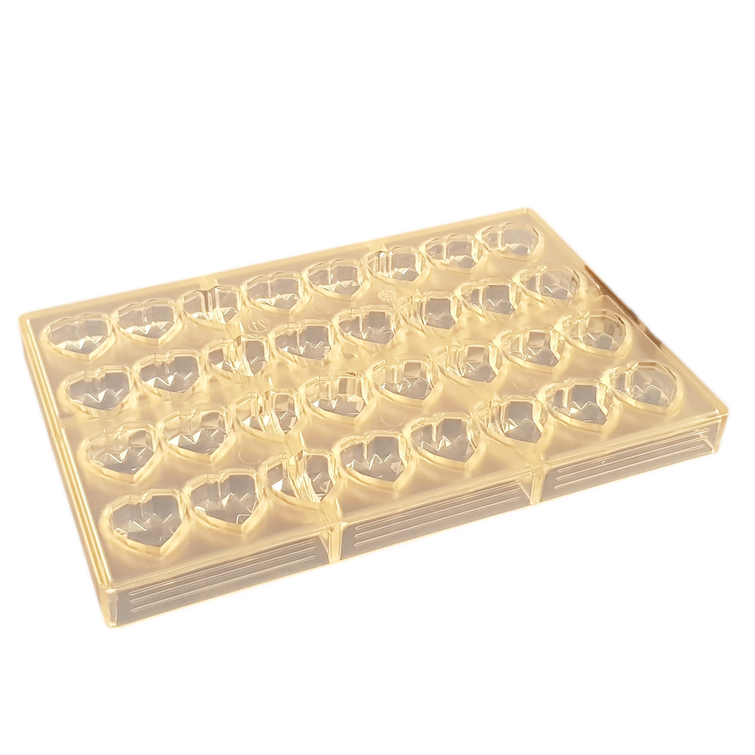 Glossy “Heart” Praline – 30 x 30 x 16 mm, 32 (4 x 8) cavities, 10g, mold dimensions: 275 x 175 x 24 mm.