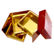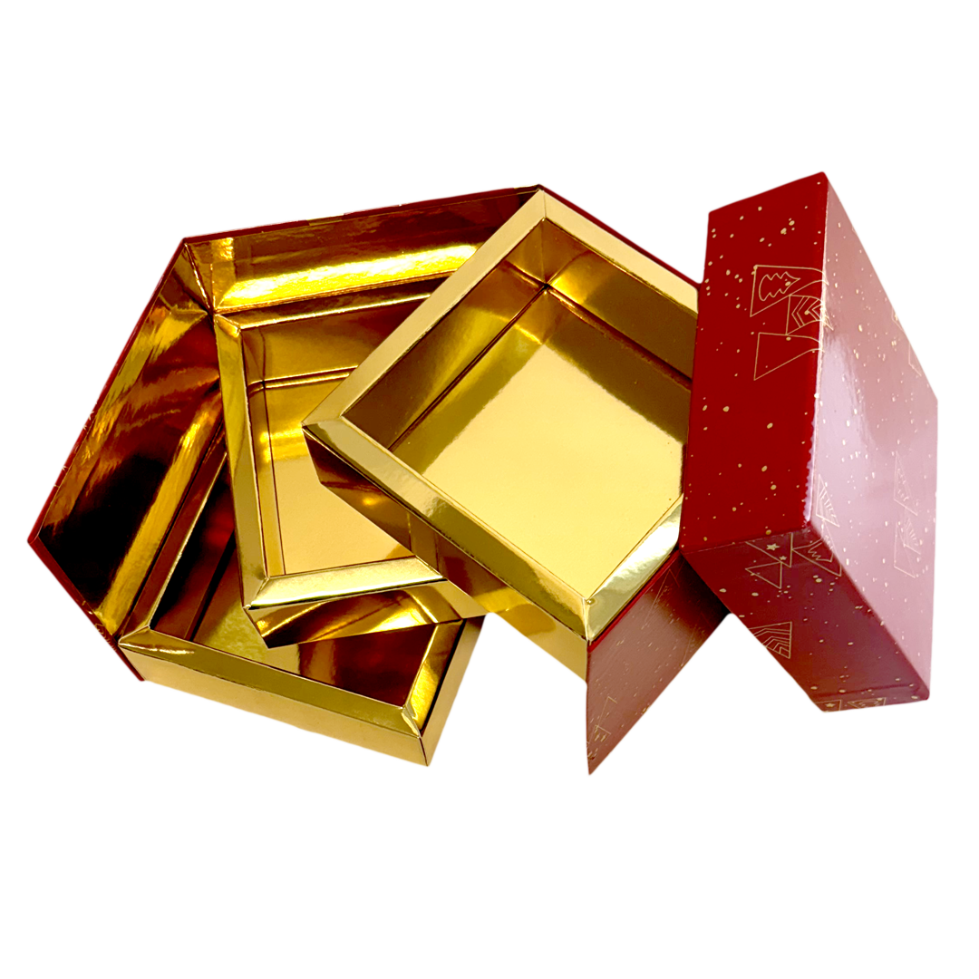 Rigid 3-tier display box, Balthazar, red and gold with a gold cavity.
