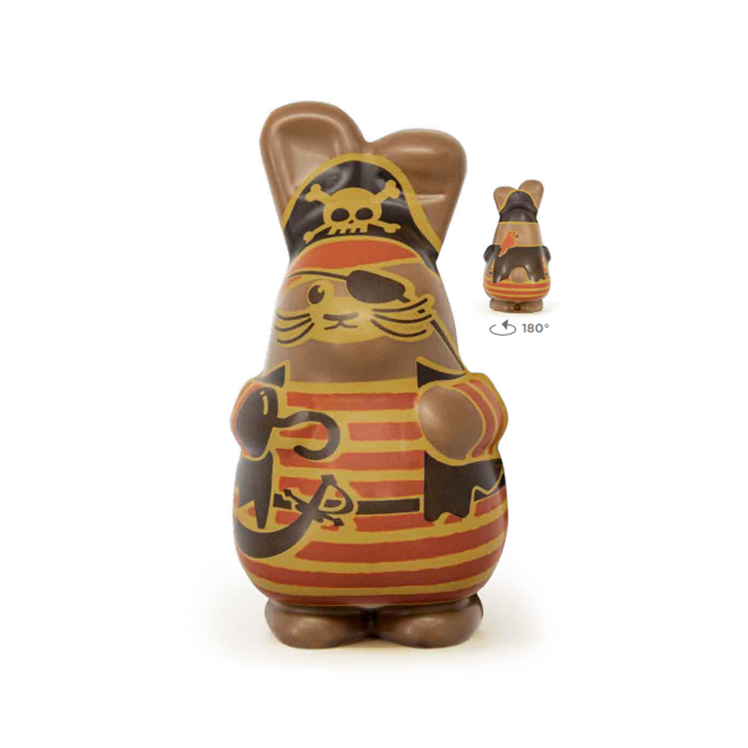 Blister sheet with a screen-printed pirate rabbit image to create a 3D character.