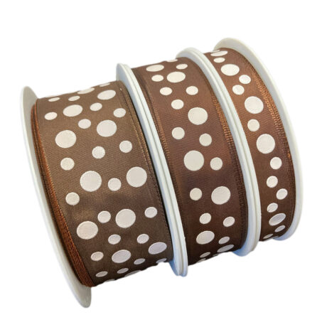 Plain brown taffeta ribbon with white dots, wired