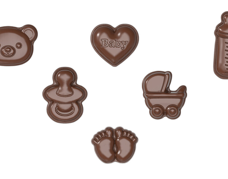Professional polycarbonate caraque chocolate mold, “Baby Shower” (6 fig.)