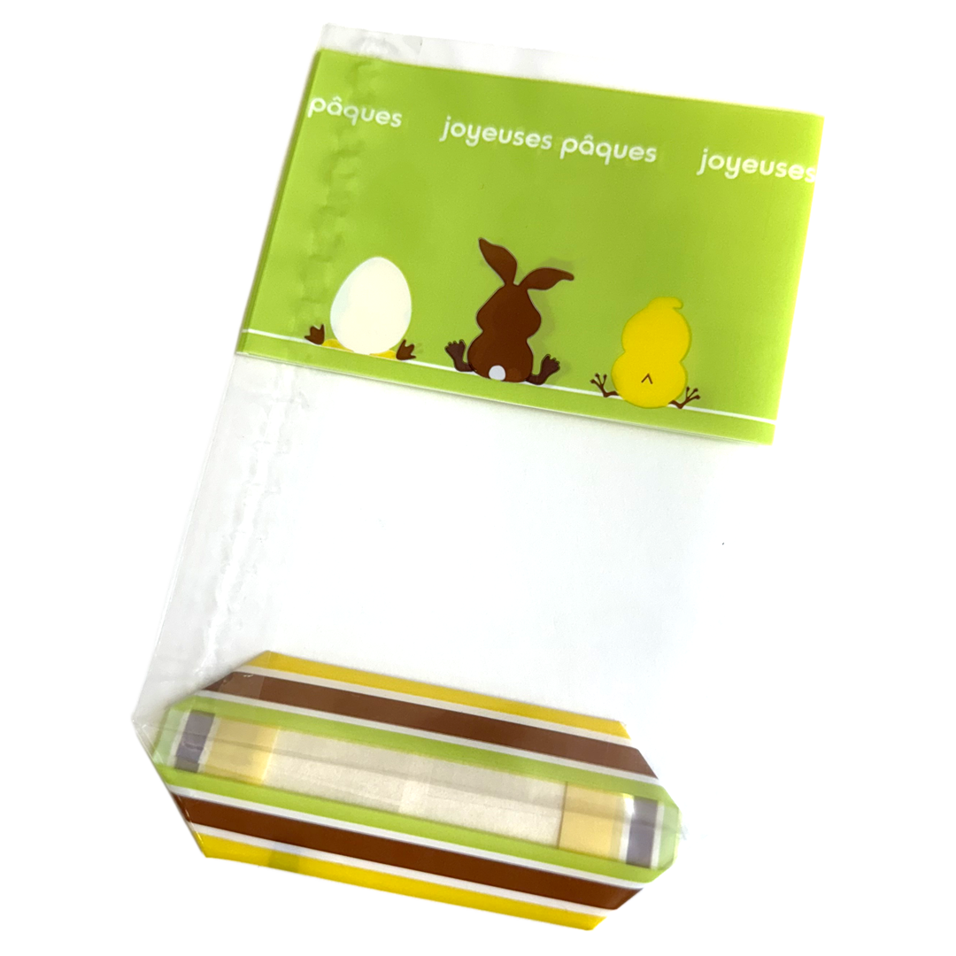Clear cellophane bag with cardboard base, Sulking Bunny, multi-colored.