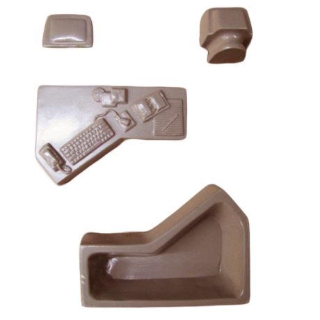 Hobbycraft mold for quality PVC candy box, 4 cavities on 1 mold, a desk box (1 cover + 1 base) and a computer (1 side a and 1 side b), restricted use.