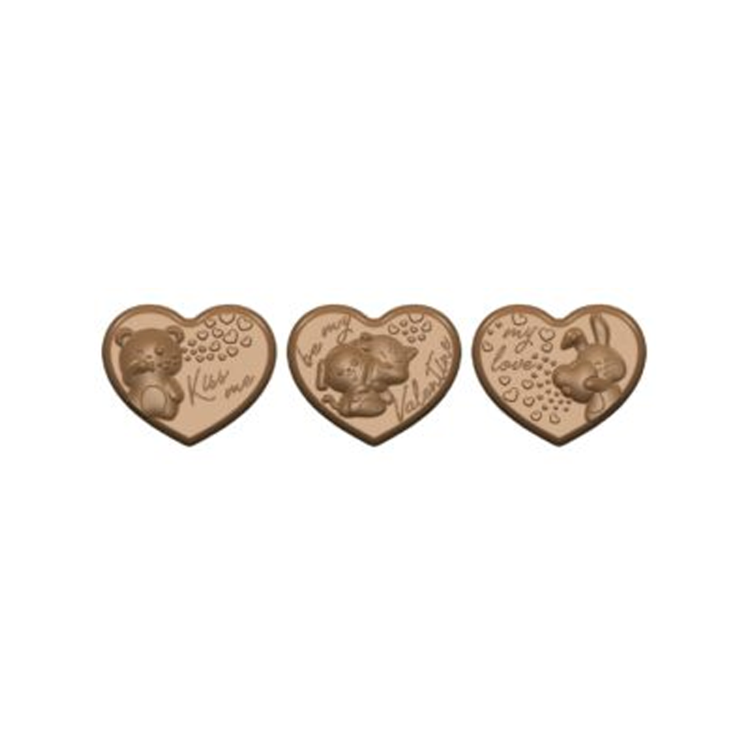 Professional polycarbonate mold for chocolate in the shape of a heart – cute animals for Valentine’s Day.