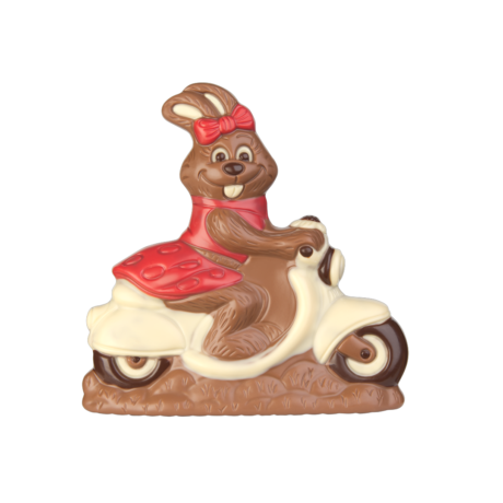 Professional polycarbonate chocolate mold, magnetic, for spinning machines – Rabbit on Scooter.