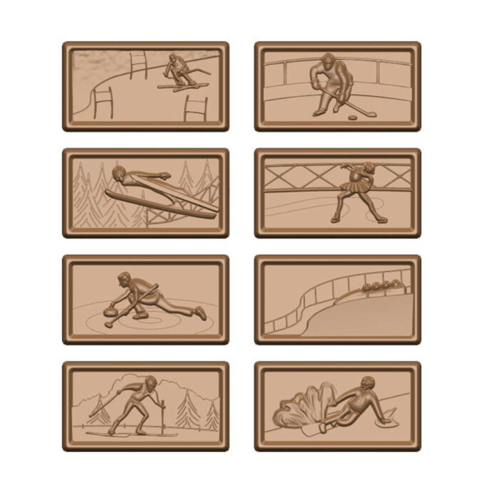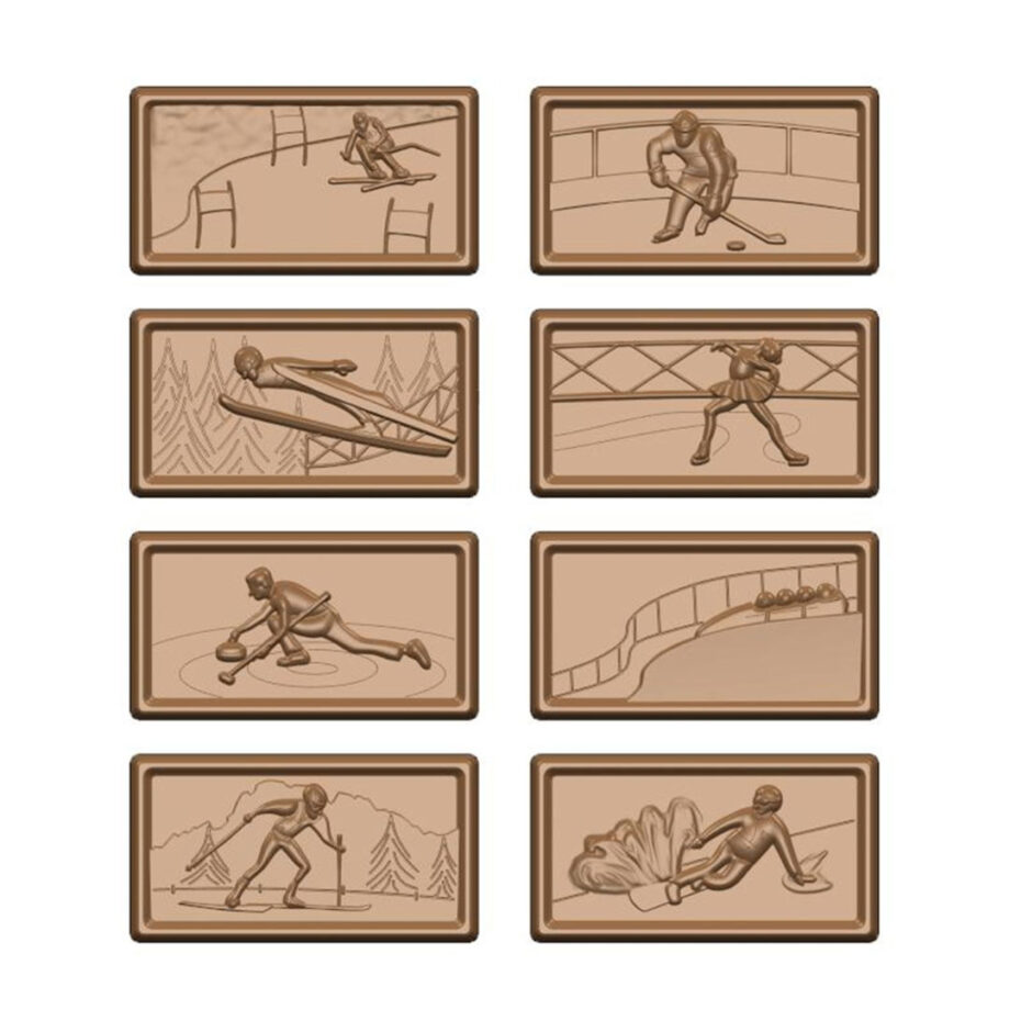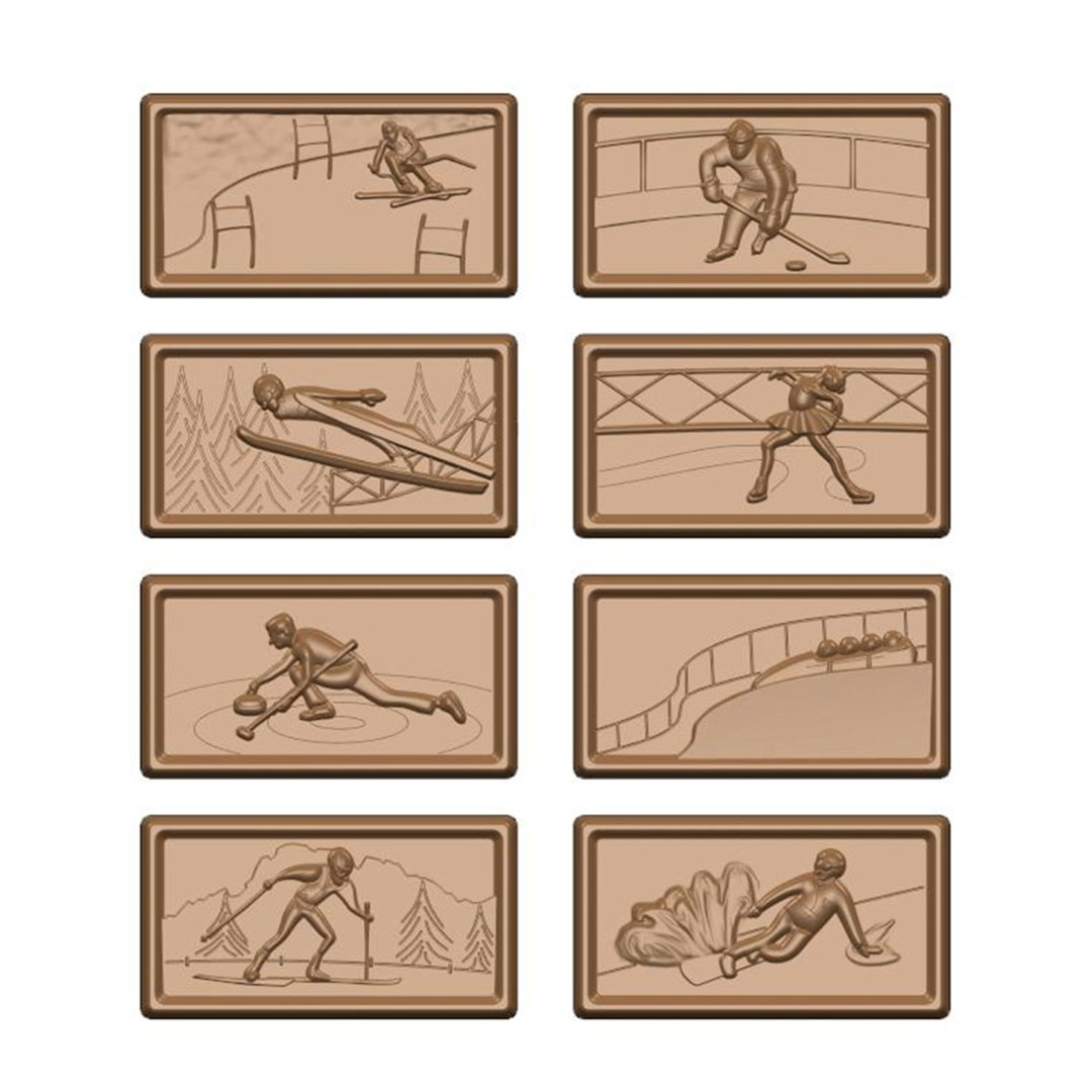 Professional polycarbonate chocolate mold in a rectangular shape – Winter Sports Tablet.