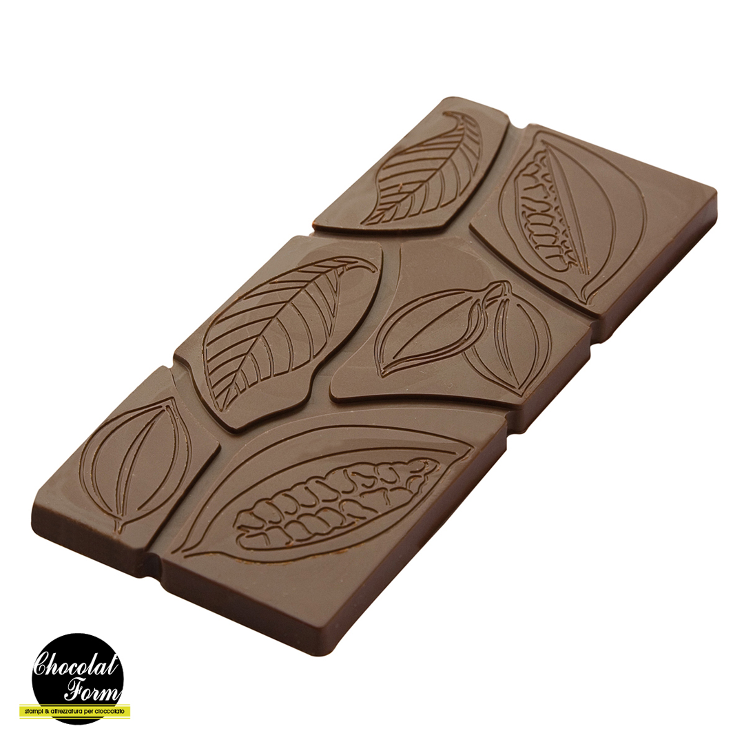 A cocoa bean and leaf chocolate bar for chocolate lovers.