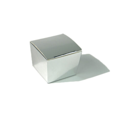 Cubetto box for one truffle or one chocolate, silver metallic white interior