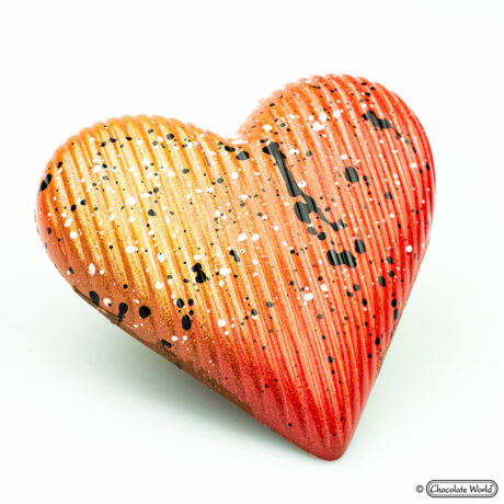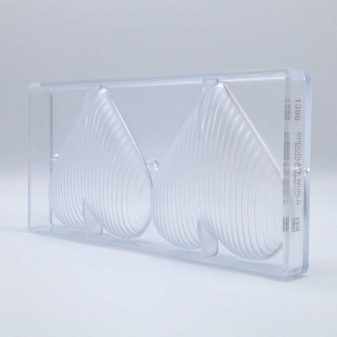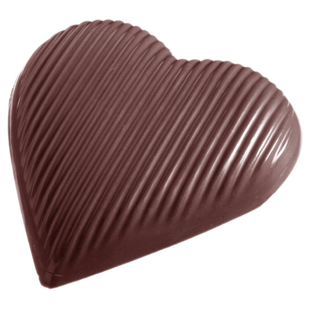 Professional polycarbonate chocolate mold in the shape of a striped heart.