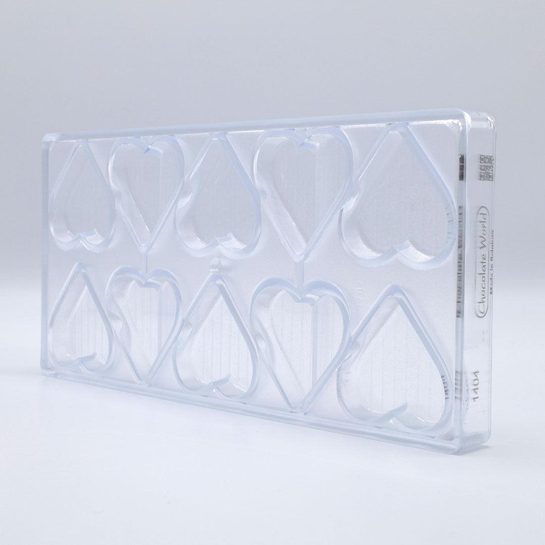 Professional polycarbonate chocolate mold in the shape of a striped heart.