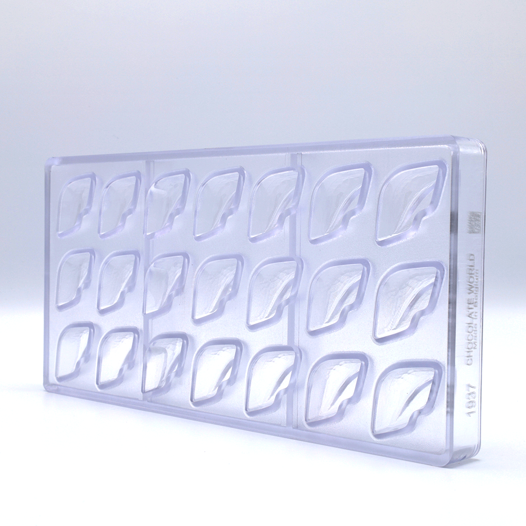 Professional polycarbonate chocolate mold with a faceted lip design.