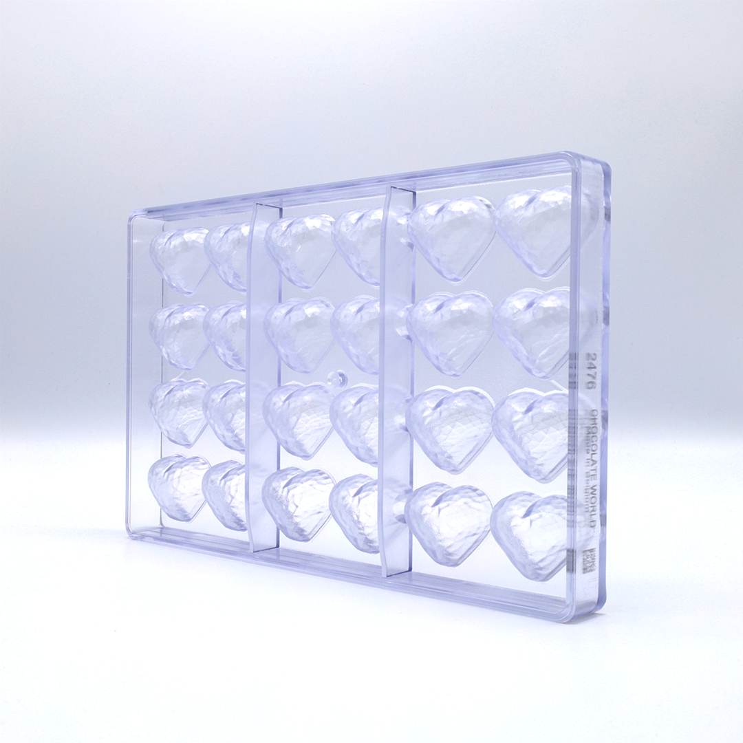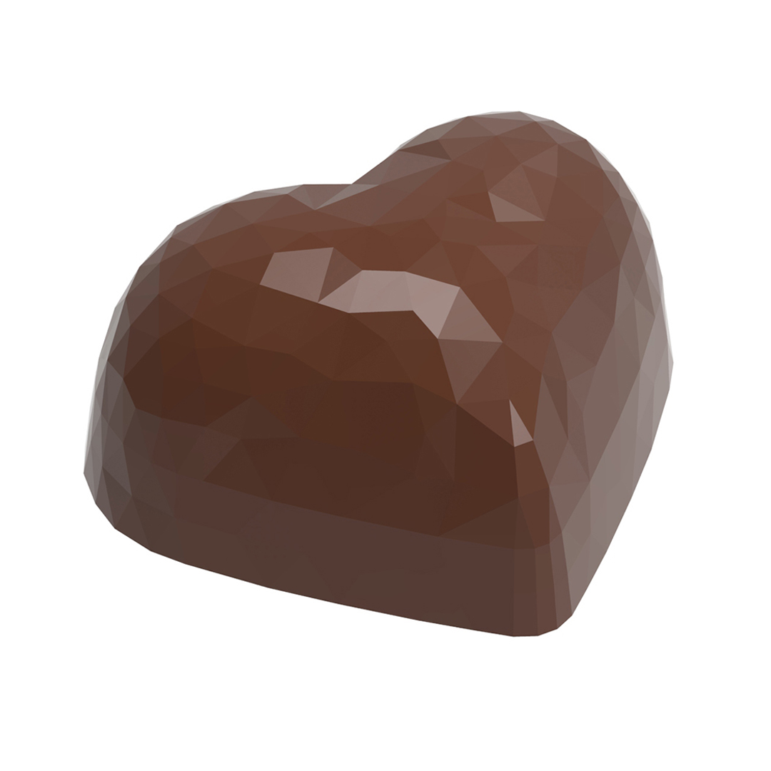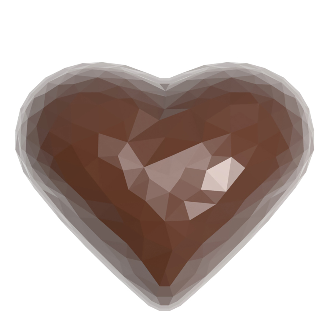 Professional polycarbonate mold. faceted heart. 36 x 29.5 x 19mm, 13g, 24 cavities