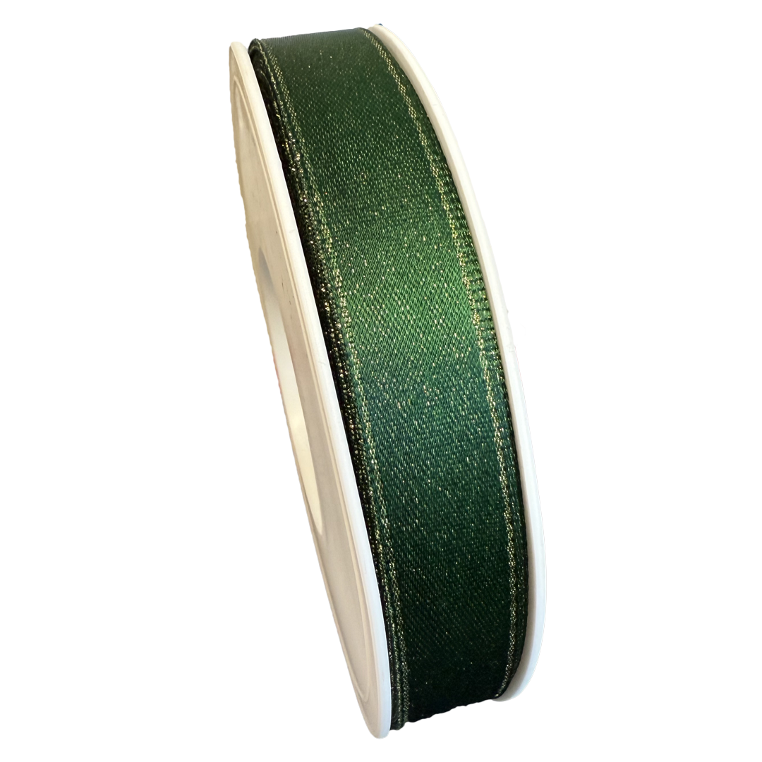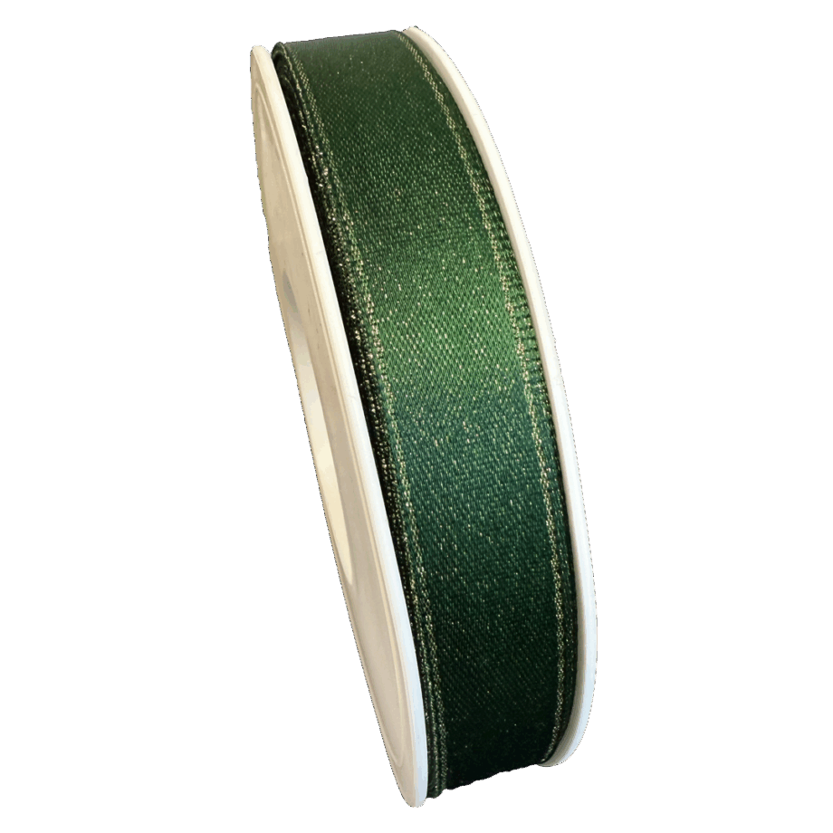 Double-Sided Glitter Satin Ribbon – Forest Green. 25m x 15mm.