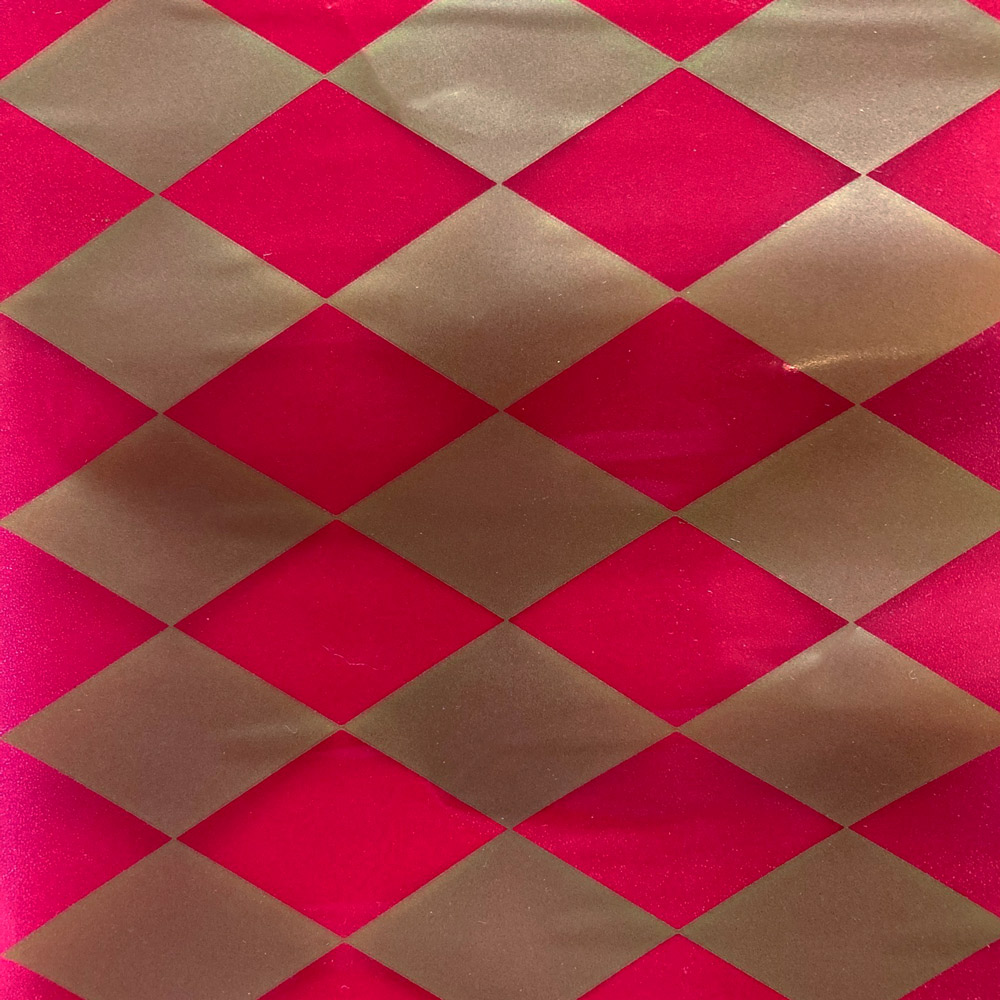 Crystal clear cello bag, flat without gusset, gold and red diamond print band