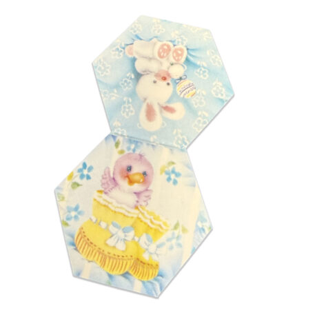 Small octagonal card featuring two illustrations: a bird and a rabbit. Pack of 10, imported from Italy.